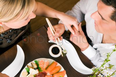 Couple eating sushi for dinner, romantic setting, presumably this is an advanced date; shallow focus on eyesContent description: no dataContent author: RH Ingram_AT© Ingram / Bank zdjęć PhotogenicaModel Release: YesCollection: Ingram Subscription ImagesKnown restrictions: » only non-exclusive licence is available Keywords for the item IPS0001874: womanmantwoblondyoungpersoneroticismromanticdish <bowl>eatingflirtsmilechopsticksdinnerSushisoya sauceRestaurantplateloverelationshipadultmeeting pointsea fooddiningromance <concepts>Fishfoodhappyimage bankphoto agencycoupleimage for adsimages for webimages for printIngram PublishingIngram Subscription ImagesIngram-ATThe content titled Couple eating sushi for dinner, romantic setting, presumably this is an advanced date; shallow focus on eyes can be purchased at the Photogenica image bank on the basis of the Royalty Free licence. All images, illustrations, vector files and motion clips can be downloaded immediately after the purchase (after completion of the payment). |