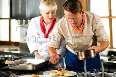 Two chefs in teamwork - man and woman - in a restaurant or hotel kitchen cooking delicious food, he is decorating the dishes, she is watchingContent description: no dataContent author: RH Ingram_AT© Ingram / Bank zdjęć PhotogenicaModel Release: YesCollection: Ingram Subscription ImagesKnown restrictions: » only non-exclusive licence is available Keywords for the item IPS0003699: womanmanteachingcook <man>personteamdish <bowl>preparingcooperationcookingRestaurantHotelplatedecorationKitchenadultdecoratingteachtogetherCaucasianteamworkchefCommercial Kitchenfoodmalefemalewatch <instrument of time>colleague <male>image bankphoto agencyimage for adsimages for webimages for printIngram PublishingIngram Subscription ImagesIngram-ATThe content titled Two chefs in teamwork - man and woman - in a restaurant or hotel kitchen cooking delicious food, he is decorating the dishes, she is watching can be purchased at the Photogenica image bank on the basis of the Royalty Free licence. All images, illustrations, vector files and motion clips can be downloaded immediately after the purchase (after completion of the payment). |