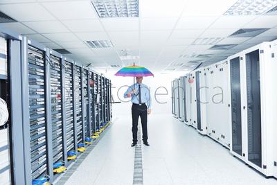 young handsome business man engineer in businessman hold rainbow colored umbrella in server datacenter room and representing security and antivirus sofware protection conceptContent description: no dataContent author: RH Ingram_DOT© Ingram / Bank zdjęć PhotogenicaModel Release: YesCollection: Ingram Subscription ImagesKnown restrictions: » only non-exclusive licence is available Keywords for the item IPS0030197: manInternete-commercecolourfulyoungserviceengineerBusinessmanpersoncableprotectionrackrainbowworknetworkSoftwareroomwireumbrellabusinessconceptsindustrytie <necktie>informationto holdfashionhigh techtechnologyprofessional <adjective>representinghighreliabledigitaldata <piece of information>databaseprettyServer <computer>fire wallCenterrecoverysystemvirtualsolutionmaleComputer PartDelete KeyAndimage bankphoto agencydata centerimage for adsimages for webimages for printLan <river, Belarus>Ingram PublishingIngram Subscription ImagesIngram-DOTThe content titled young handsome business man engineer in