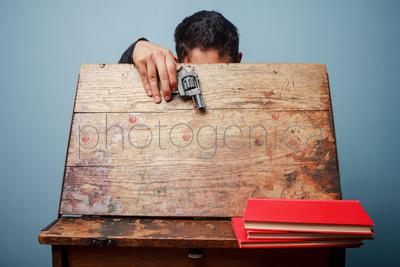 Young man with a gun hiding behind school deskContent description: no dataContent author: RH Ingram_LB© Ingram / Bank zdjęć PhotogenicaModel Release: YesCollection: Ingram Subscription ImagesKnown restrictions: » only non-exclusive licence is available Keywords for the item IPS0070515: manoneyoungneck <Human Body Part>personangerstudentbookweaponwoodsittingfirearm<gun>school <Education Building>Collegedeskpistolcultureadultanonymouscatastrophecheck<control>hidinghighshotbelowyouthorientalsecondMurderbehindbill <Financial Accessory>socialethnicseatedStudiofrontUnrecognisable PersonmaleActing<actor>alienation <concept>image bankphoto agencyimage for adsimages for webimages for printĹ <town, Norway>AmericaIngram PublishingIngram Subscription ImagesIngram-LBThe content titled Young man with a gun hiding behind school desk can be purchased at the Photogenica image bank on the basis of the Royalty Free licence. All images, illustrations, vector files and motion clips can be downloaded immediately after the purchase (after completion of the payment). |