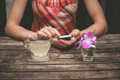 A young woman is drinking tea and using her smart phone at a wooden tableContent description: no dataContent author: RH Ingram_LB© Ingram / Bank zdjęć PhotogenicaModel Release: YesCollection: Ingram Subscription ImagesKnown restrictions: » only non-exclusive licence is available Keywords for the item IPS0072739: womanpurplefree timesummeryounghandharmonydrinkapplyto enjoyvacationtriprelaxationsittingto drinktelephonebreakfastRestaurantcafe <catering building>teaTextcommunication <Concepts>Beautylifestyleadultcuteto holdOutdoordaydaylightprettybeautifulfoodfemaleatAndwoodenhappyimage bankphoto agencyimage for adsimages for webimages for printMobile <town, USA>Ĺ <town, Norway>FlowerOrchidIngram PublishingIngram Subscription ImagesIngram-LBThe content titled A young woman is drinking tea and using her smart phone at a wooden table can be purchased at the Photogenica image bank on the basis of the Royalty Free licence. All images, illustrations, vector files and motion clips can be downloaded immediately after the purchase (after completion of the payment). |