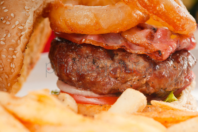 Classic american hamburger sandwich with onion rings and french fries, with fresh vegetablesContent description: Classic american hamburger sandwich with onion rings and french fries, witClassic american hamburger sandwich with onion rings and french fries, with fresh vegetablesh fresh vegetablesContent author: keko64© keko64 / PhotogenicaModel Release: no information availableCollection: PhotogenicaKeywords for the item PHA0009838: close-up <technique>seed <agriculture>colourfulredwhitefat <obese>breadpotato <staple>tomatoonion <vegetable>DeliciousrolldinnerFast FoodmeatLunchFrench friesSandwichsnackcheeseHamburger <Fast Food>CheeseburgerbeefmealnourishmentfreshbigFrench<adjective>tastyjuicyAmerican Culturefastclassicalbaconbarbecuedonion ringfriedcolourfoodBurgerCheddarCuisineLettuce <Lactuca>Paprikasesame <plant>The content titled Classic american hamburger sandwich with onion rings and french fries, with fresh vegetables can be purchased at the Photogenica image bank on the basis of the Royalty Free licence. All images, illustrations, vector files and motion clips can be downloaded immediately after the purchase (after completion of the payment). |