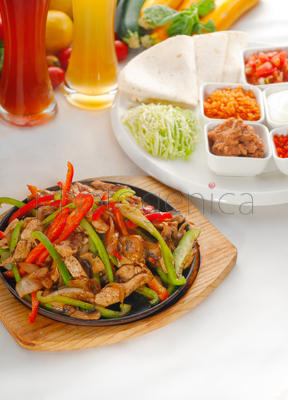 Original fajita sizzling smoking hot served on iron plate and fresh vegetables (beer on background)Content description: Original fajita sizzling smoking hot served on iron plate and fresh vegetables (beer on background)Content author: keko64© keko64 / PhotogenicaModel Release: no information availableCollection: PhotogenicaKeywords for the item PHA0010616: colourfulgreen <colour>reddish <bowl>vegetablespicesaucetomatoonion <vegetable>DeliciousdinnermeatLunchsnackalcohol<liquid>Restaurantplatetumbler <drinking vessel>TortillachickenbeefBeermealglass <industrial product>healthypotCake standhot <temperature>freshiron <metal>spicychilliesbeer glassappetizinggenuinechopping boardMexican<adjective>Guacamoletraditionalbarbecuedfoodred bell peppergravy boatgreen pepperSalsa <Dip>woodenBeef stripsBell pepper stripChicken breast stripCuisineCut into stripsslicedfahitaMexicopepper<Spice>The content titled Original fajita sizzling smoking hot served on iron plate and fresh vegetables (beer on background) can be purchased at the Photogenica image bank on the basis of the Royalty Free licence. All images, illustrations, vector files and motion clips can be downloaded immediately after the purchase (after completion of the payment). |