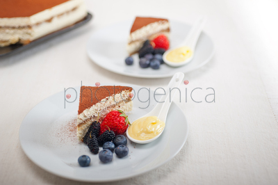 Classic Italian tiramisu dessert with berries and custartd pastry cream on sideContent description: Classic Italian tiramisu dessert with berries and custartd pastry cream on sideContent author: keko64© keko64 / PhotogenicaModel Release: no information availableCollection: PhotogenicaKeywords for the item PHA0011360: light <brightness>nobodybright <sky>whiteDessertfruitpastryDeliciousspoonsliceTiramisucakeMascaponesnackcheesecreamchocolatesugarplatebiscuit <small>coffeeEspressobrownfreshsweetcaloriepowderuncomplicatedpiecetastyportionItaliantraditionalfoodto bakeberry <Seed>GourmetcustardCreme <pudding>CuisineItalyMulberryBilberryStrawberryThe content titled Classic Italian tiramisu dessert with berries and custartd pastry cream on side can be purchased at the Photogenica image bank on the basis of the Royalty Free licence. All images, illustrations, vector files and motion clips can be downloaded immediately after the purchase (after completion of the payment). |