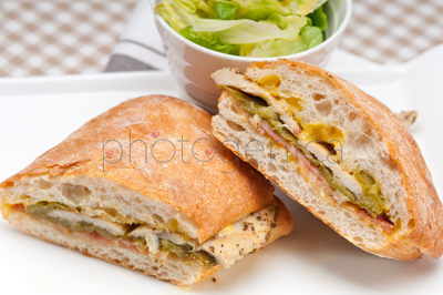 Chicken roasted pepper aioli ciabatta sandwichContent description: Chicken roasted pepper aioli ciabatta sandwichContent author: keko64© keko64 / PhotogenicaModel Release: no information availableCollection: PhotogenicaKeywords for the item PHA0012298: green <colour>whitebreadvegetabledish <food>DeliciousleafrollslicedinnerdietmeatbreakfastLunchSandwichsnackcheesedelicatessen shopplatetableFrench stickpoultry <bird>chickenhamMozzarellamealhealthyfreshcold <temperature>bigstuffedsemifastmiddleItalianinterior areaAntipasticookedtraditionalcanapefoodstuffingGourmetCiabattaCuisinepanini <sandwich>Lettuce <Lactuca>pepper<Spice>The content titled Chicken roasted pepper aioli ciabatta sandwich can be purchased at the Photogenica image bank on the basis of the Royalty Free licence. All images, illustrations, vector files and motion clips can be downloaded immediately after the purchase (after completion of the payment). |