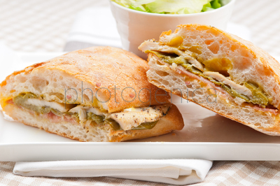 Chicken roasted pepper aioli ciabatta sandwichContent description: Chicken roasted pepper aioli ciabatta sandwichContent author: keko64© keko64 / PhotogenicaModel Release: no information availableCollection: PhotogenicaKeywords for the item PHA0012302: green <colour>whitebreaddish <food>DeliciousleafrollslicedinnerdietmeatbreakfastLunchSandwichsnackcheesedelicatessen shopplatetableFrench stickpoultry <bird>chickenhamMozzarellamealhealthyfreshcold <temperature>bigstuffedsemifastmiddleItalianinterior areaAntipasticookedtraditionalcanapefoodstuffingGourmetCiabattaCuisinepanini <sandwich>Lettuce <Lactuca>pepper<Spice>The content titled Chicken roasted pepper aioli ciabatta sandwich can be purchased at the Photogenica image bank on the basis of the Royalty Free licence. All images, illustrations, vector files and motion clips can be downloaded immediately after the purchase (after completion of the payment). |