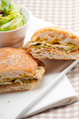 Chicken roasted pepper aioli ciabatta sandwichContent description: Chicken roasted pepper aioli ciabatta sandwichContent author: keko64© keko64 / PhotogenicaModel Release: no information availableCollection: PhotogenicaKeywords for the item PHA0012308: green <colour>whitebreadvegetabledish <food>DeliciousleafrollslicedinnerdietmeatbreakfastLunchSandwichsnackcheesedelicatessen shopplatetableFrench stickpoultry <bird>chickenhamMozzarellamealhealthyfreshcold <temperature>bigstuffedsemifastmiddleItalianinterior areaAntipasticookedtraditionalcanapefoodstuffingGourmetCiabattaCuisinepanini <sandwich>Lettuce <Lactuca>pepper<Spice>The content titled Chicken roasted pepper aioli ciabatta sandwich can be purchased at the Photogenica image bank on the basis of the Royalty Free licence. All images, illustrations, vector files and motion clips can be downloaded immediately after the purchase (after completion of the payment). |