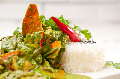 Green curry chicken and vegetable stew with riceContent description: Green curry chicken and vegetable stew with riceContent author: keko64© keko64 / PhotogenicaModel Release: NoCollection: PhotogenicaKnown restrictions: » only non-exclusive licence is available Keywords for the item PHA0013741: close-up <technique>macro shotnobodygreen <colour>redwhitedish <bowl>vegetablespicepaste <food>sauceDeliciousdinnermeatLunchCurryplatepoultry <bird>chickenmealhealthyhot <temperature>freshspicychilliesasian <adjective>tastygarnishChinese<adjective>grain of ricecookedIndian<adjective>traditionalethnicfoodchilli powderred bell pepperGourmetviscosityBasmatiCoatingCuisinePaprikapepper<Spice>coriander <Coriandrum>The content titled Green curry chicken and vegetable stew with rice can be purchased at the Photogenica image bank on the basis of the Royalty Free licence. All images, illustrations, vector files and motion clips can be downloaded immediately after the purchase (after completion of the payment). |